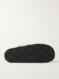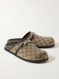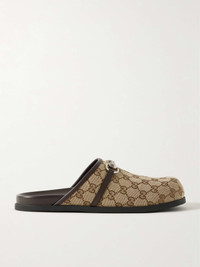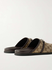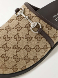 Rhein Horsebit Leather-Trimmed Canvas-Jacquard Mules