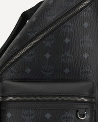 The Aren Sling Backpack by MCM, made of Visetos canvas with natural nappa leather trim, combines style and practicality. The adjustable shoulder strap, side handle and zippered pockets provide comfort and functionality. The zippered corner closure and interior zippered compartment offer security and organization. Dark cobalt metal hardware and a faux nappa leather lining complete the sleek, modern design. DETAILS - Sku: MMLGSTA02_BK - Season: SS26 - Dimension: 44x31x11 - Composition: GENERAL 100% Fabric - MADE IN KOREA, SOUTH