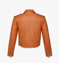 A renegade style emblematic of MCM. Sculpted from Italian lamb leather, this cropped motorcycle jacket features a leather lining printed with the classic Visetos monogram. Driven by function as well as form, the silhouette is fitted with numerous zip pockets as well as an adjustable leather belt fostering a perfect fit. - Asymmetric zip closure - Front zip pockets - Leather buckle fastening - Logo-engraved metal snap embellishments - 100% Lamb Leather - Leather lining with Visetos monogram print - Slim, cropped fit. Male model is about 186cm / 6'1" tall and wearing size Medium. Female model is about 175cm / 5'7" tall and wearing size Small. - Made in Italy
