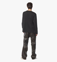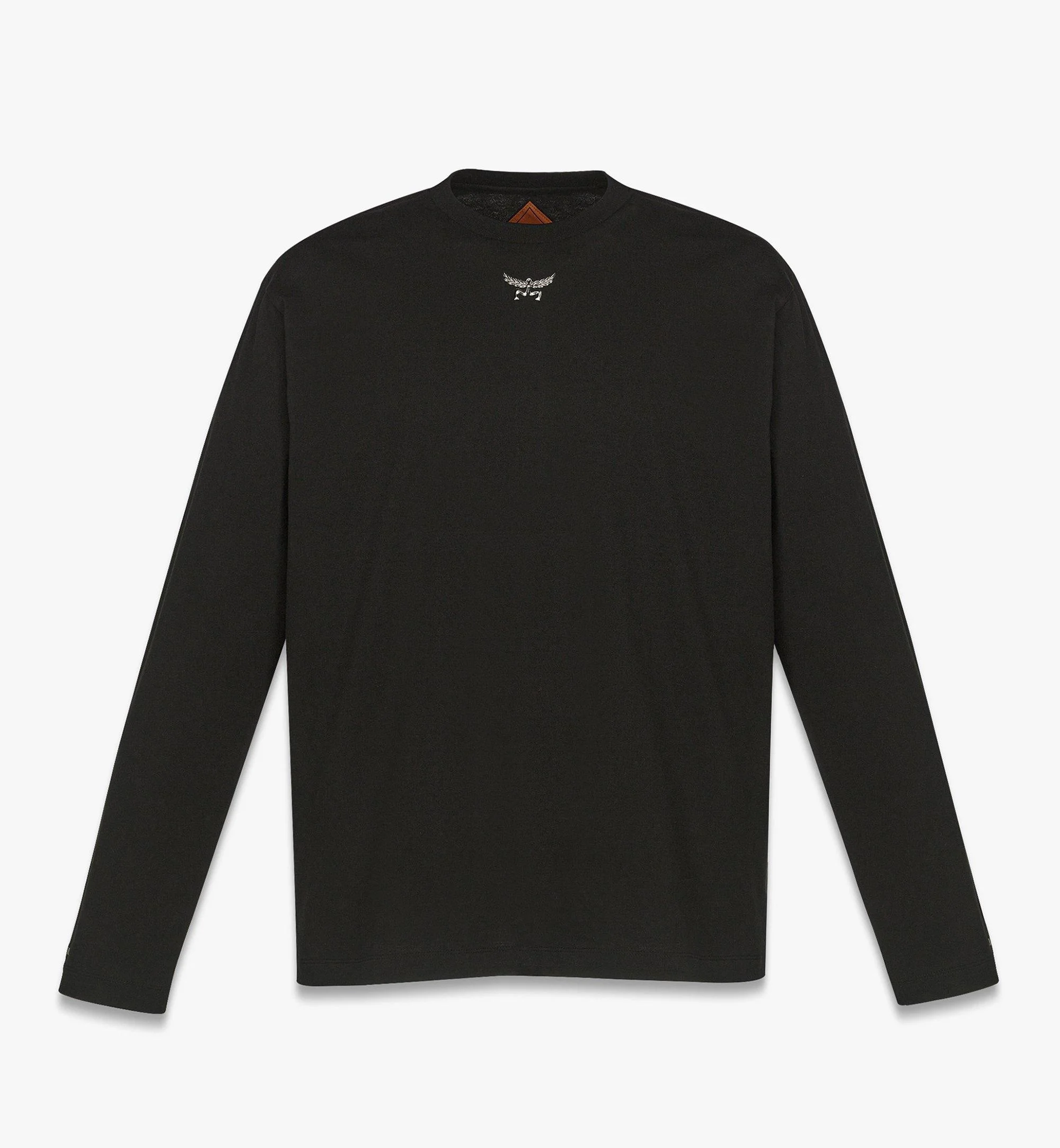 A metallic high frequency print of the signature Laurel emblem is featured on the front of this long sleeve T-shirt. The organic cotton composition is certified by the Global Organic Textile Standard (GOTS). - Approximately 0.4 x 0.4 x 0.4 inches - Laurel logo high frequency print - Rib knit collar - Long sleeves - 100% GOTS-Certified Organic Cotton - Oversized fit. Male Model is about 188cm / 6'2" tall and wearing size Medium. Female model is about 173cm / 5'7" tall and wearing size Small. - Hand wash or dry clean. Do not bleach or tumble dry. Iron with press cloth. - Made in South Korea Style # MHTEABC01BK00L