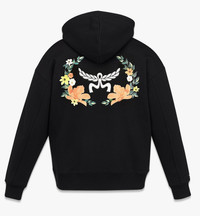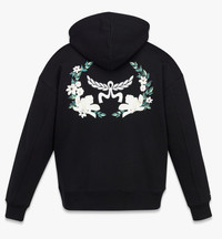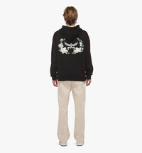 The triumphant Laurel emblem graces the front and back of this GOTS-certified organic cotton hooded sweatshirt. Changing colors when exposed to sunlight, a floral garland graphic print frames the victorious visage. - Adjustable drawstring hood with logo-engraved metal tips - Front kangaroo pocket - Laurel logo motif on chest - Floral graphic print and laurel embroidery at back - Rib knit hem and cuffs - 100% GOTS-Certified Organic Cotton - Model is about 186cm / 6'1" tall and wearing size Medium. - Dry clean. Do not bleach, rub or soak. Do not tumble dry. - Made in South Korea Style # MHAESMM01BK00M
