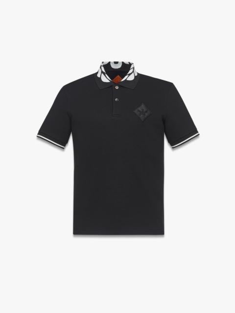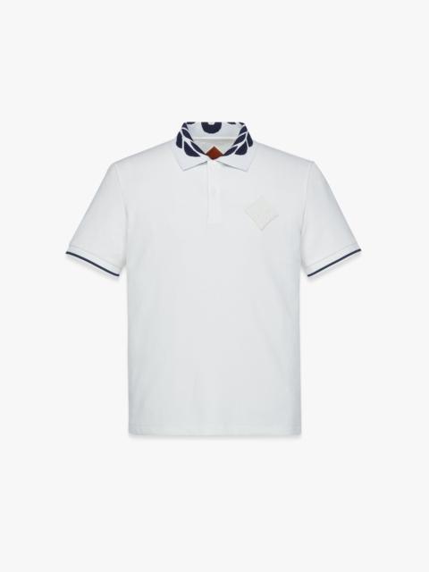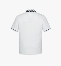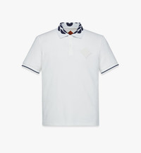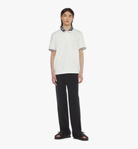 The victorious laurels crown the intarsia knit collar of this pique polo imagined in a mindful blend of recycled polyester and organic cotton. Recycled faux horn buttons and a logo-embossed faux leather patch complete the silhouette. - Intarsia knit collar with Laurel motif - Recycled faux horn button closure - Logo-embossed faux leather diamond patch on chest - Rib knit cuffs with contrast striping - 71% Recycled Polyester, 27% Organic Cotton, 2% Spandex - Model is about 186cm / 6'1" tall and wearing size Medium. - Hand wash. Do not bleach, rub or soak. Do not tumble dry. - Made in South Korea Style # MHTESMM07WO2XL