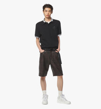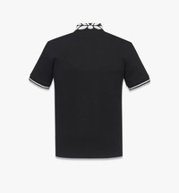 The victorious symbolism of the Laurel emblem crowns the intarsia knit collar of this pique polo fashioned from recycled polyester and organic cotton. Sustainable faux horn buttons and a logo-embossed Bavarian diamond patch complete the silhouette. - Intarsia knit collar with Laurel motif - Recycled faux horn button closure - Logo-embossed faux leather diamond patch on chest - Rib knit cuffs with contrast striping - 71% Recycled Polyester, 27% Organic Cotton, 2% Spandex - Regular fit. Model is about 188cm / 6'2" tall and wearing size Medium - Dry clean. Do not bleach or tumble dry. - Made in South Korea Style # MHTESMM07BK00S