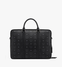 An artisanal companion, crafted to elevate professional endeavors. This large briefcase in black Visetos features two ample zip compartments for sumptuous storage of documents, devices, and accessories. A leather hang tag accompanies the monogram silhouette in a nod to the travel heritage of the Munich House. - Detachable, adjustable logo-woven fabric strap - Front zip compartment for documents and accessories - Removable leather hang tag - Rear zip compartment for laptops, tablets, and devices - Body: Visetos monogram canvas - Trim: Natural leather - Dark silver-tone cobalt metal hardware - Cotton twill lining - Approximately 2.8 x 15.0 x 11.0 inches - 32.1" to 57.1" strap length, Handle drop: 3.5" - Made in South Korea