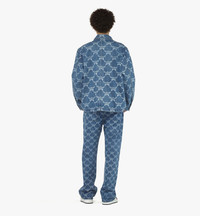The signature Lauretos monogram embellishes this jacket through an all-over discharge print. Woven from premium indigo denim, the oversized silhouette is finished with front pockets featuring a flap design inspired by the Bavarian diamonds of Munich. - Lauretos monogram discharge print - Hidden button closure - Front flap pockets - Button cuffs - 100% Cotton - Oversized fit. Model is about 185cm / 6' tall and wearing size Medium - Gently reverse wash at 30°C with similar colors. Do not dry clean, bleach, or tumble dry. Iron at max temperature of 110°C. - Made in South Korea Style # MHJEAMM02LI00L