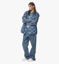 The signature Lauretos monogram is present on this long-sleeve shirt through an all-over discharge print. Woven from premium indigo denim, the oversized silhouette is further crowned with the noble garland through Laurel logo embroidery on the chest pocket. - Unisex model - Front button closure - Lauretos monogram all-over discharge print - Chest pocket with Laurel logo embroidery - Button cuffs - Oversized fit - Made in South Korea