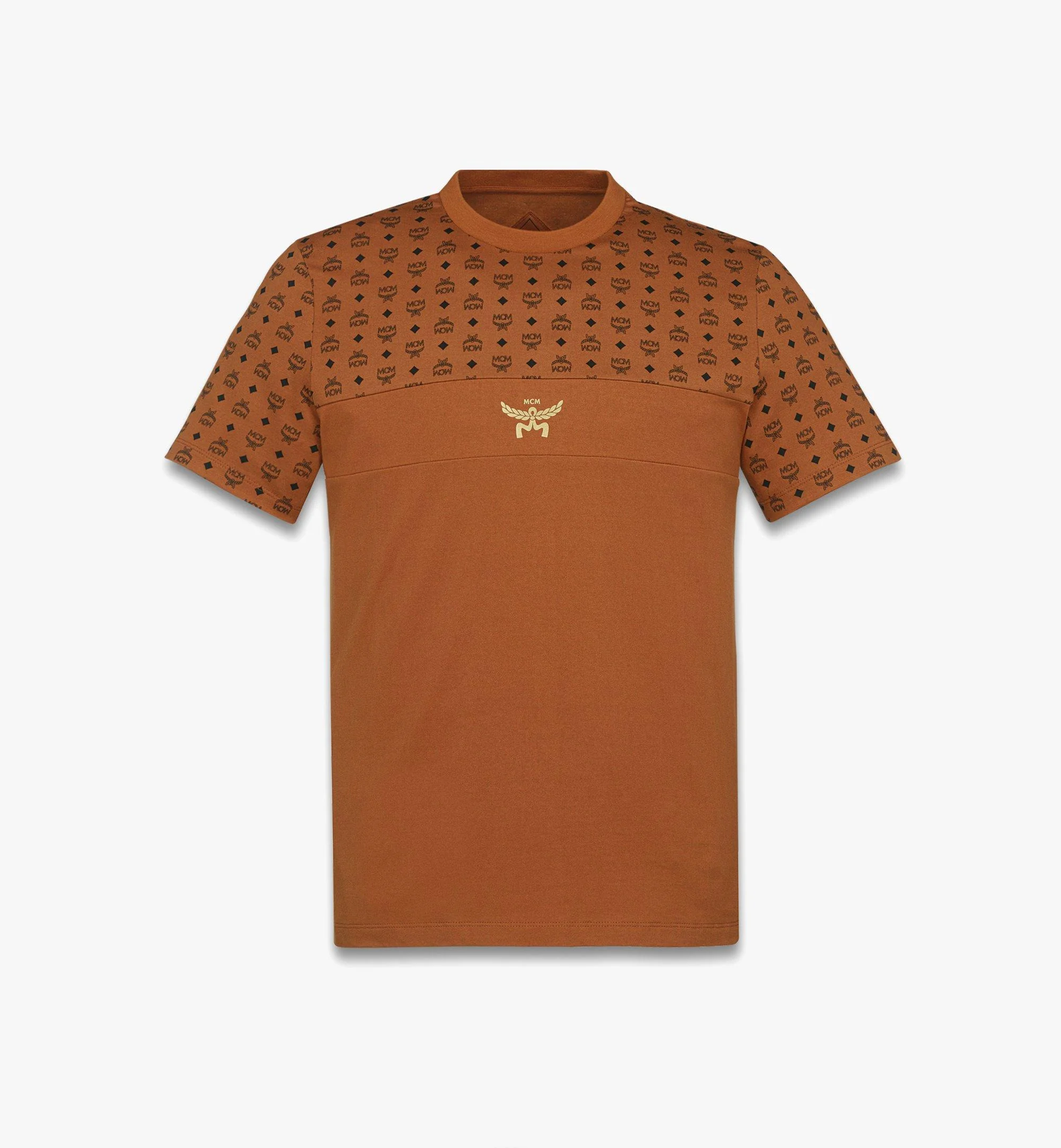 The organic cotton T-shirt features the signature Visetos monogram print in classic cognac. Solid tonal panels — crowned with a gold-tone edition of the Laurel emblem — compose the rest of the silhouette for a rich contrast. - Visetos monogram print - Gold-tone Laurel logo motif - 100% Organic Cotton - Rib knit trim - Regular fit - Female model is 176cm / 5'8" tall and wears size S. - Made in South Korea