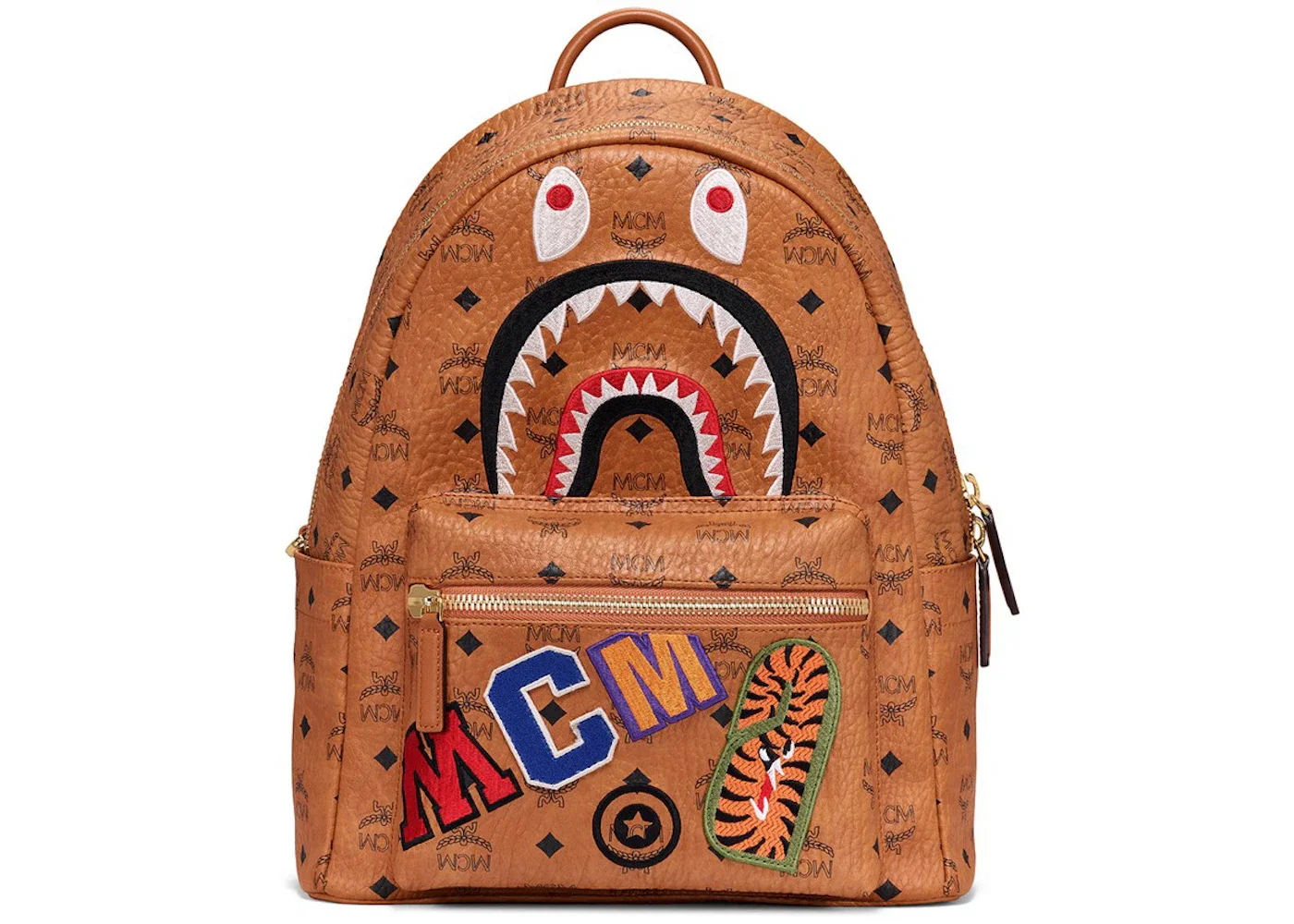 The MCM x BAPE Backpack Visetos Medium Cognac comes in a Cognac color scheme. This Medium Backpack is the result of a collaboration between the lifestyle brands. It measures approximately 13.0 cm long, 30.0 cm wide, and 38.0 cm high. This bag comes with a zip closure and a leather top handle. The backpack also features adjustable shoulder straps, made of cotton twill material. The design is completed with an interior compartment for laptop or personal belongings storage. The MCM x BAPE Backpack Visetos Medium Cognac was first released into the market in March 2022 with a retail price of $1,075.Please Note: This item comes with a dust bag, the box is not required. - Dimensions 14.5H 10.6W 5.1D - Material Coated Canvas - Retail Price 1075 - Color Cognac - Hardware 24k Gold Plated - Style MMK9AMB01CO001 - Season FW19 - Base Model Backpack - Base Model Variety x BAPE - Color Generic Brown - Depth 5.1 - Featured false - Height 14.5 - Interior Color Beige Cotton Twill Lining - Pattern Visetos - Styles Backpack - Width 10.6