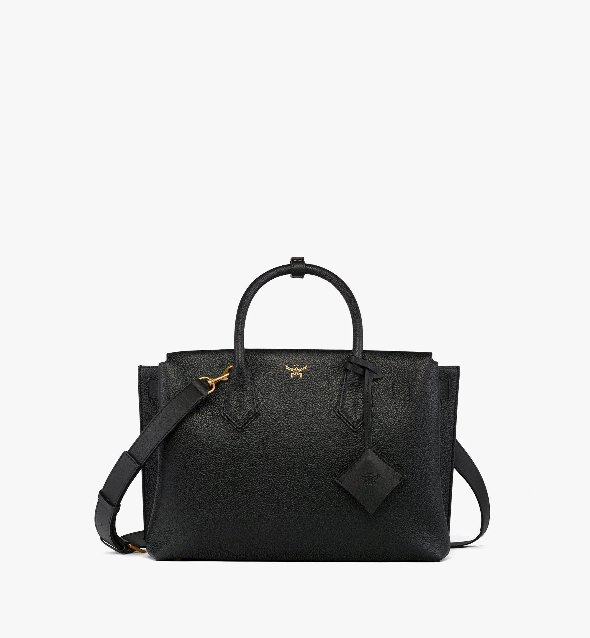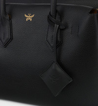Sculpted from Spanish grained leather, the iconic Milla tote returns with a traditional winged silhouette exuding sophistication in tandem with a compartmentalized interior embodying functional elegance. Embellished with a logo-embossed leather charm, the classic design can be carried in hand or worn hands-free with the leather shoulder strap. - Detachable, adjustable leather strap - Leather top handles - Detachable logo-embossed Bavarian diamond leather charm - MCM logo motif at front - Magnetic tab closure - Interior zip compartment - Body: Spanish embossed leather - Trim: Natural nappa leather - 24k gold-plated brass hardware - Microfiber lining with suede finish - Approximately 5.5 x 13.0 x 9.3 inches - Made in Italy