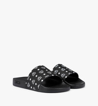 The classic monogram is printed on the textured vamp of these rubber slides. Sublime comfort is achieved through a slightly grained footbed and an “MCM” logo sole with a Bavarian diamond motif on the heel. - Visetos monogram print on upper - Specially-developed rubber vamp - Grained rubber sole - Bavarian diamond motif on heel - Our slides run small. We suggest ordering 1 size up from your normal size for the perfect fit. - Clean outsole with a soft brush. For the upper, please use a slightly wet soft cotton cloth. - Made in South Korea Style # MESCAMM11BK038