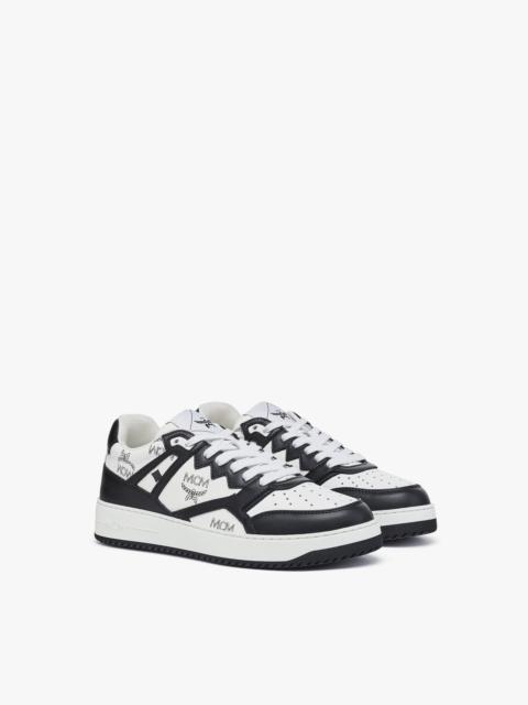 The Neo Terrain Lo sneakers remix the signature MCM low-top silhouette. An architectural quality is present through a linear calf leather overlay atop the Visetos monogram canvas upper. Referencing the Bavarian diamond, a leather heel patch and woven tongue label embellish the pair. A mesh-infused calf leather grants a higher level of comfort. - Laurel logo label on padded tongue - Leather diamond patch on heel - Rubber outsole with MCM logo motifs - Trim: Italian calf leather - Body: Visetos monogram canvas - Mesh-infused calf leather lining - Avoid contact with water or substances containing alcohol (ex. perfumes, makeup or oil). Remove insock and dry at room temperature before cleaning. Clean outsole with a soft brush and upper with a slightly wet cotton cloth. - Made in Italy Style # MESESAJ03WT036