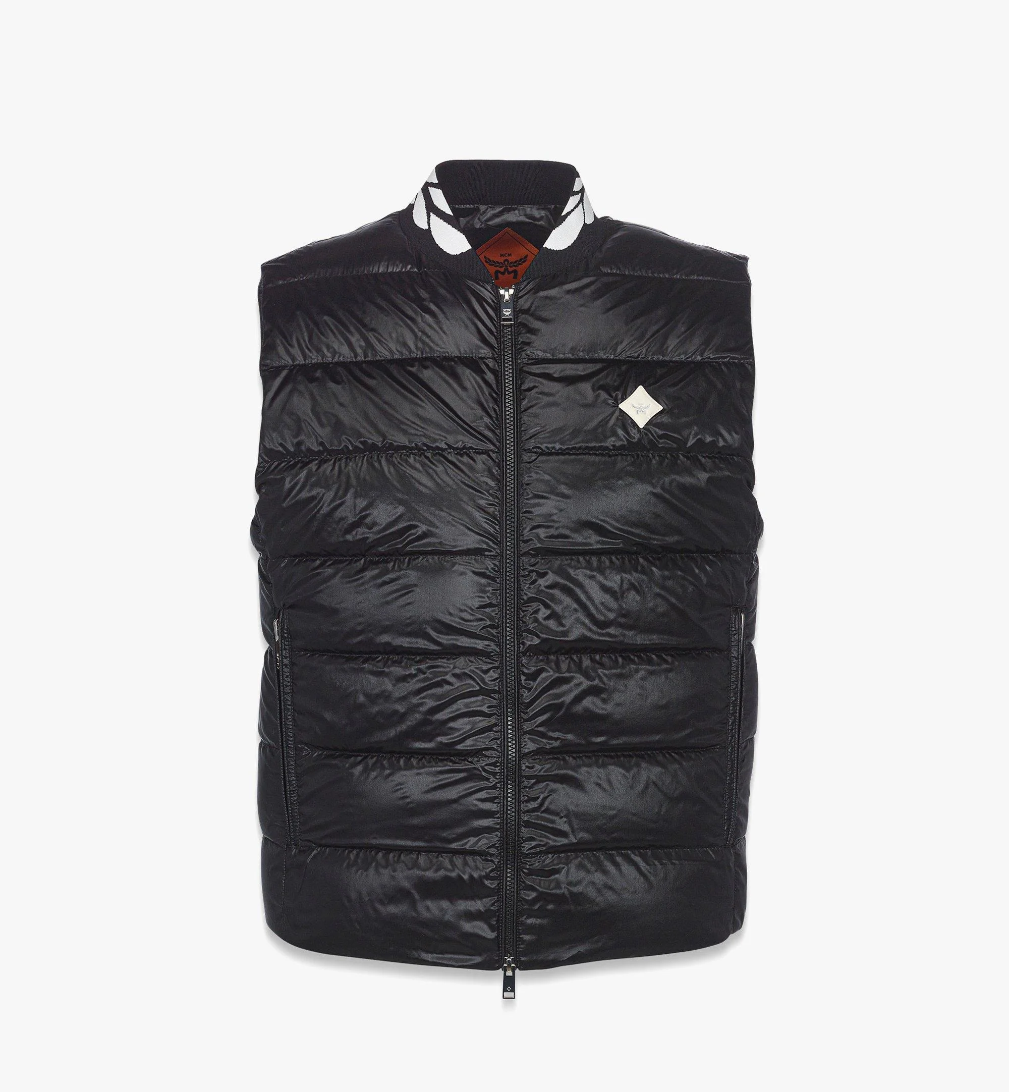 Embodying the travel heritage of MCM, this down vest converts to a monogram pouch through a packable design allowing for easy carriage and storage. The ECONYL® yarn is entirely sustainable — meaning the nylon fiber can be recycled many times over while retaining its quality and integrity. - Approximately 0.4 x 0.4 x 0.4 inches - Packable design for conversion into a monogram zip pouch - Jacquard rib knit Laurel collar - Two-way zip closure - Logo-embossed faux leather diamond patch - Front zip pockets - Goose down filling - 100% ECONYL® Regenerated Nylon - Monogram printed lining - Regular fit - Hand wash only. Do not dry clean. Do not iron, bleach, or tumble dry. - Made in South Korea Style # MHVEAMM02BK00L
