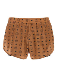 logo-print shorts Highlights - Brown - Logo pattern - Double layer - Elasticated waistband Imported Composition Lining: Nylon 84%, Elastane 16% Outer: Nylon 100% Washing instructions Read Manufacturer Guidelines