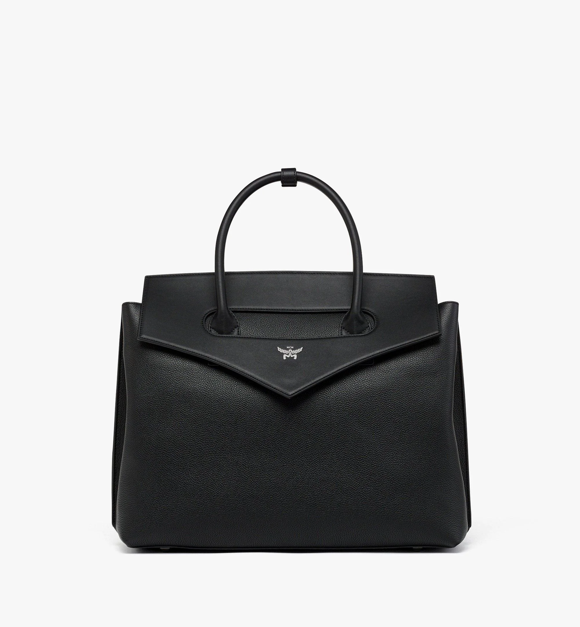 Inspired by a legacy silhouette from the MCM archives, the Soft Diamond tote bag draws its name from its supple grained leather body and Bavarian diamond-inspired calf leather handles. The Bauhaus design principle of form following function is especially expressed inside the interior, featuring an inner zip compartment which can be detached and carried as a zip pouch. - Approximately 5.9 x 16.1 x 12.6 inches - Handle drop: 5.1" - Leather top handles - Bavarian diamond leather front flap - MCM logo motif at front - Magnetic flap closure - Detachable zip pouch - Trim: Spanish calfskin leather - Body: Embossed leather - Dark silver-tone cobalt metal hardware - Microfiber lining with suede finish - Made in Italy Style # MMTEAAK03BK001