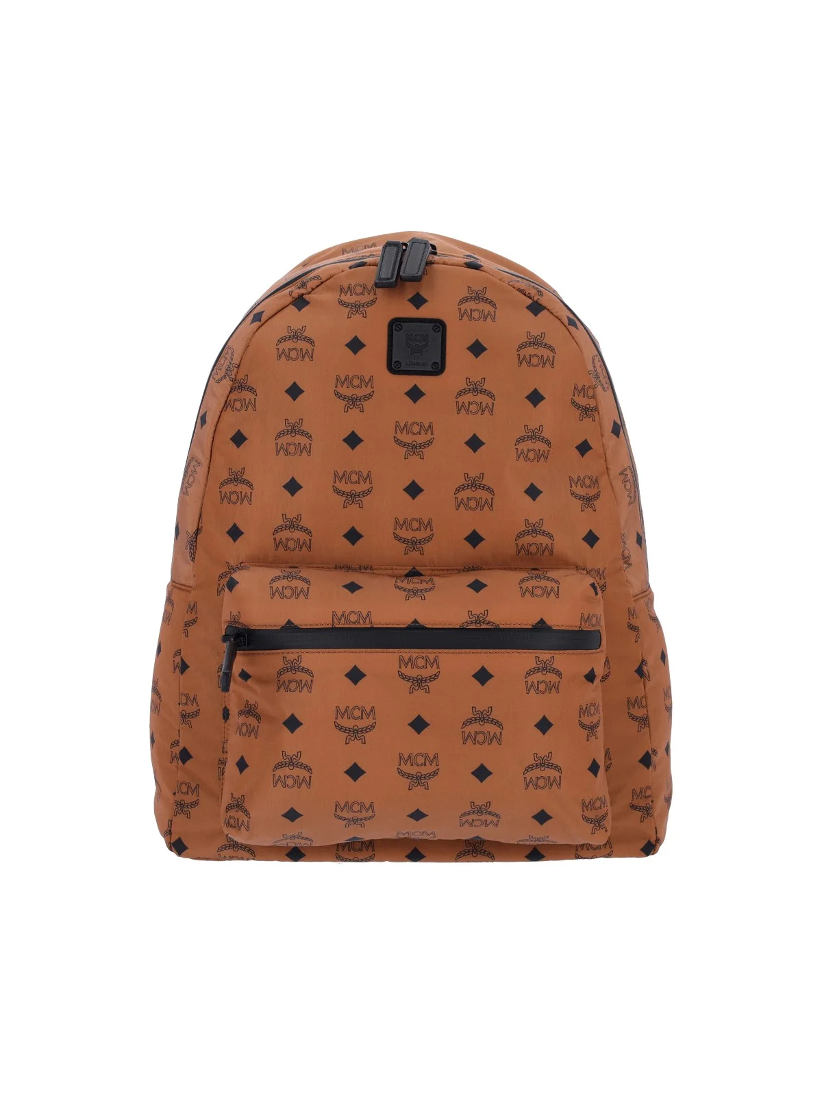 MCM 'STARK' BACKPACK IN BROWN MONOGRAM NYLON WITH TOP HANDLE, TWO BACK SHOULDER STRAPS, CONTRASTING BLACK BACK, ZIP CLOSURE, FRONT PATCH ZIP POCKET WITH BLACK LOGO PLAQUE DETAIL, MAIN INNER COMPARTMENT. PRODUCT INFO PRODUCT CODE MMKEAVE05CO COMPOSITION: 100% NYLON SIZE AND FIT: H 40.9 X W 32 X D 14 CM MADE IN: SOUTH KOREA - HANDLE DROP: 7.9 CM - TRIMS: 100% LEATHER