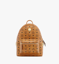 A portable icon embodying the boundless spirit of the global nomad. Crafted from Visetos canvas and natural nappa leather, the Stark backpack is renowned for organizing devices, documents, and accessories in an elevated fashion. Pyramid studs frame the silhouette for a brilliant finish. - Approximately 5.1 x 10.2 x 13.0 inches - 29.1" to 35.4" strap length, Handle drop: 2.8" - Adjustable shoulder straps - Leather top handle - MCM logo plate - Front zip compartment - Outer side pockets with studded embellishments - Two-way zip closure - Interior pocket and sleeve for tablet - Trim: Natural nappa leather - Body: Visetos monogram canvas - 24k gold-plated metal hardware - Faux nappa lining - Made in South Korea Style # MMKEAVE15CO001