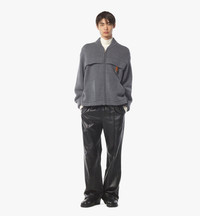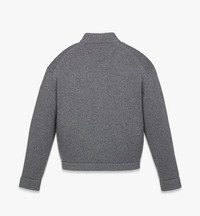 Sartorial refinement, enriched by the leather craftsmanship of the Munich House. This unisex zip cardigan in wool and recycled cashmere is augmented with a leather loop featuring a Bavarian diamond-inspired metal ring. Front patch pockets and a rib knit trim complement the oversized silhouette. - Zip closure - Leather loop with diamond metal ring - Front patch pockets - Rib knit trim - 70% Wool, 30% Recycled Cashmere - Oversized fit - Dry clean only. Do not wash, bleach, or tumble dry. Cool iron. - Made in South Korea Style # MHDEAMM01ED00L