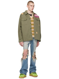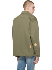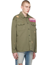 Cotton gabardine shirt. Bleached effect throughout. · Spread collar · Button closure · Logo patch at chest · Flap and seam pockets at front · Dropped shoulders · Flap pocket at sleeve · Single-button barrel cuffs Supplier color: Military green 100% cotton. Made in Italy 241152M192000