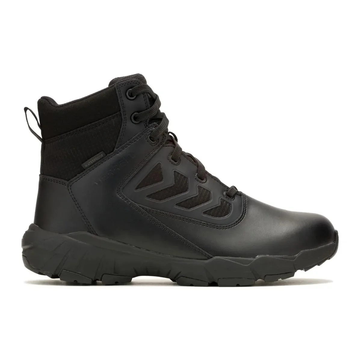 Introducing the new Fullbench Tactical, a fusion of tactical performance and lightweight durability. Built for those who demand speed and agility while on the job, the Fullbench Tactical delivers all day comfort and the toughness you need for the task ahead. With a waterproof membrane and advanced COMFORTBASE™ footbed and midsole technologies, you'll be ready to move with confidence and speed all shift long. FEATURES • Waterproof coated leather and mesh upper • Bellows tongue keeps out debris • Breathable mesh lining • COMFORTBASE™ removable contoured footbed cradles your foot in all day comfort • Molded nylon arch shank • Merrell Air Cushion in the heel absorbs shock and adds stability • COMFORTBASE™ rubberized EVA midsole for increased shock absorption and cushion • Merrell sticky rubber outsole with durable traction that grips when and where you need it • Boot height: 6in, 152.4mm • Half pair weight: 1lbs-1.77oz, 504g