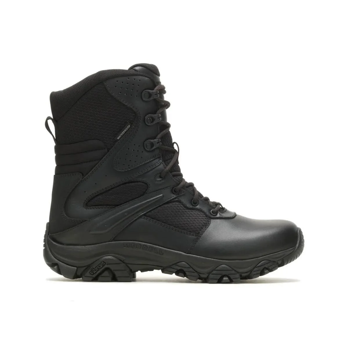 The same out-of-the box comfort you love from our original Moab hiking boot, re-invented for long days on duty. Durability and protection with waterproof leather and mesh upper and side-zip for easy entry and exit, and our COMFORTBASE™ footbed and midsole offer all day comfort on the job. The Moab 3 Response 8"" Tactical Zip WP boot is built for the toughest environments. • Waterproof membrane seals out water and lets moisture escape • Waterproof full grain leather and mesh upper • Waterproof medial zipper for quick on and off • Bellows tongue keeps out debris • Metallic hardware • Breathable mesh lining • Mesh footbed cover • Cleansport NXT™ treated for natural odour control • COMFORTBASE™ removable contoured footbed cradles your foot in all day comfort • Molded nylon arch shank • Merrell Air Cushion in the heel absorbs shock and adds stability • Super Rebound Compound midsole provides durable shock absorption to help reduce torque and allow for a smooth transition into the midfoot • Vibram® TC5+ outsole provides exceptional traction for outdoor multi-sport activities, formulated exclusively for Merrell • Boot height: 8in, 203.2mm • Half pair weight: 1lbs-5.12oz, 599g
