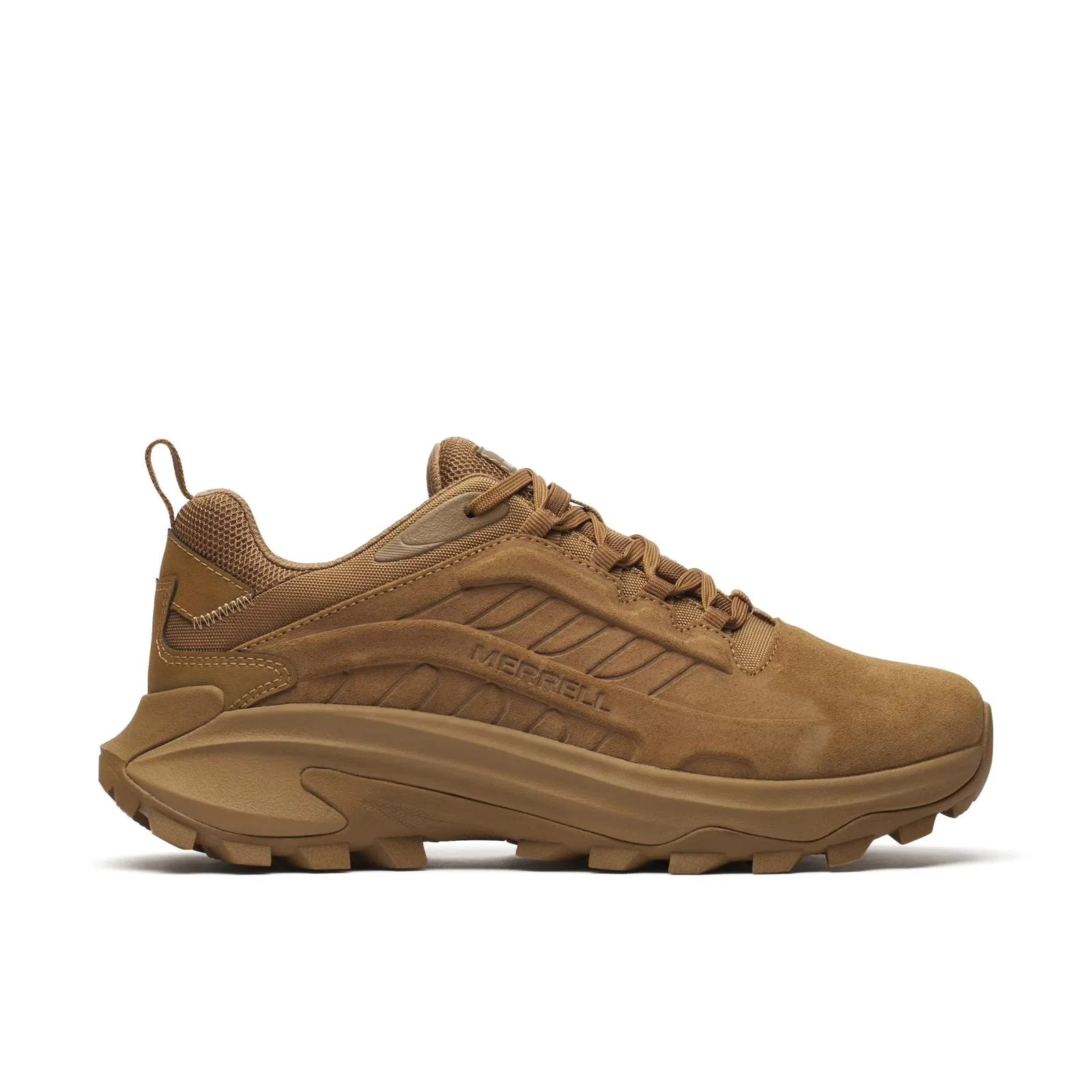 Professional-Grade Tactical Footwear. The Moab Speed 2 Tactical combines Merrell's trusted hiking heritage with professional-duty performance for those who need reliable footwear during demanding shifts. Ideal For: Law enforcement, security professionals, first responders, and tactical personnel Features: • Waterproof full-grain leather upper protects against elements • Bellows tongue keeps debris out during active wear • Premium all-day comfort with FloatPro foam midsole and ComfortBase™ footbed • Sticky rubber outsole provides superior grip with slip and oil resistance • Sustainable design with 100% recycled laces, webbing, and mesh lining Technical Specifications: • Removable ComfortBase™ contoured footbed • Molded nylon arch shank for stability • Waterproof leather construction • Padded collar reduces pressure points • Breathable recycled mesh lining promotes airflow • Weight: 15.83 oz (449g) per shoe