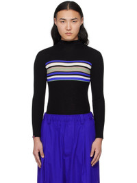 Rib knit virgin wool sweater. · Mock neck · Stripes at chest Supplier color: Black/Multi/Stripe 100% virgin wool. Made in Spain 241512M205001