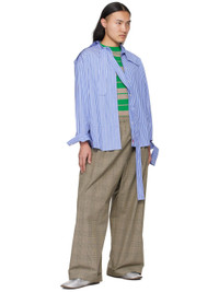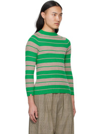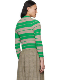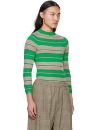 Rib knit virgin wool sweater. · Stripes throughout · Mock neck Supplier color: Sand melange/Green 100% virgin wool. Made in Spain 241512M205000