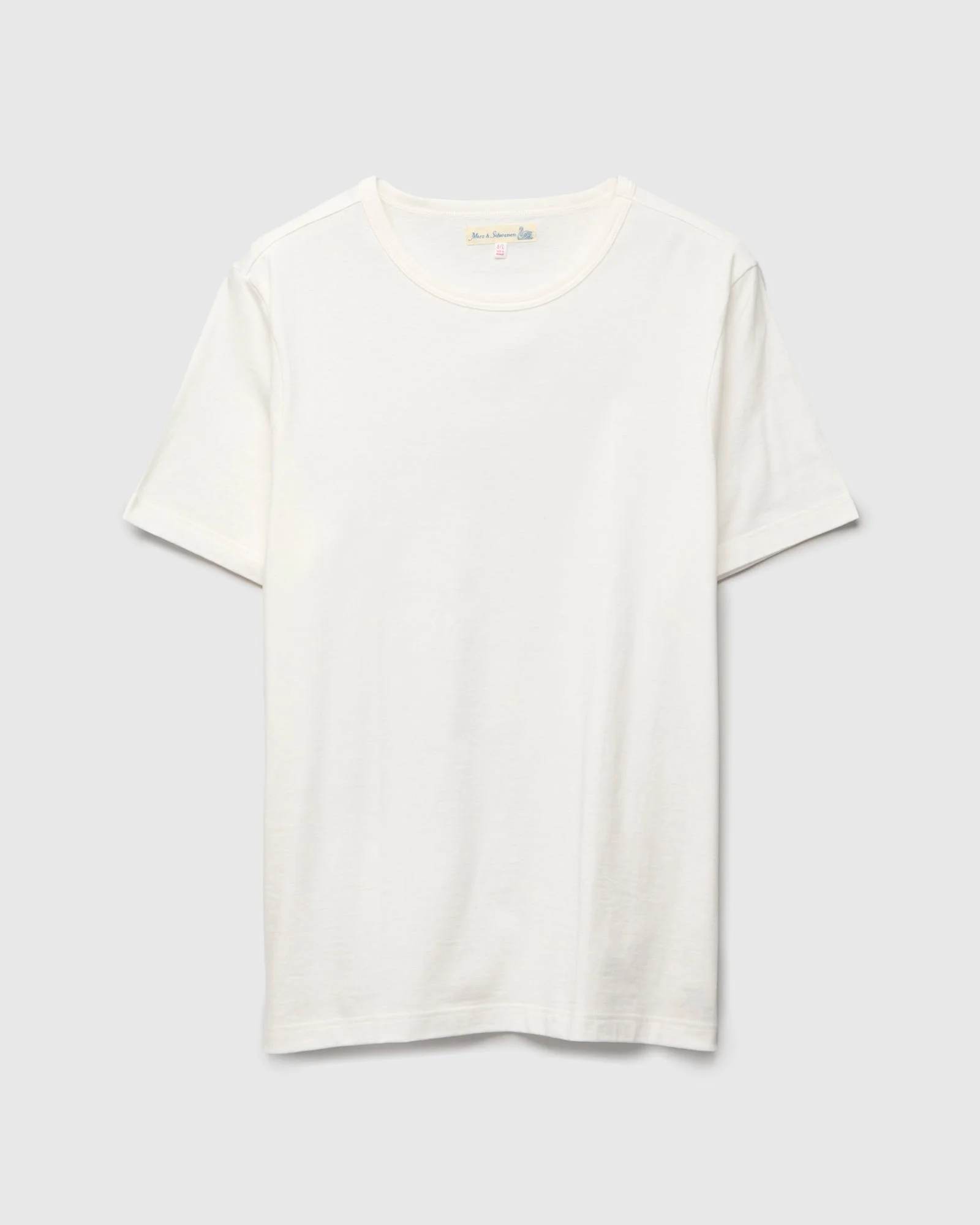 The 1950s T-Shirt from Merz b. Schwanen is crafted on original German loopwheel machines from the turn of the century. Made with soft organic cotton, the tubular knit utilizes a time and labor-intensive knitting process yielding exceptionally soft and flexible fabrics. The lightweight tee is cut in a regular fit with classic detailing, making it an easy-to-wear, comfortable everyday staple. It is recommended to take one size up to account for shrinkage. - Regular fit - Fabric will shrink 1-1.5" in the first wash - 5.5oz all natural 1-thread fabric - Manufactured on original loopwheel machines - Custom woven tag - 100% organic cotton - Made in Germany