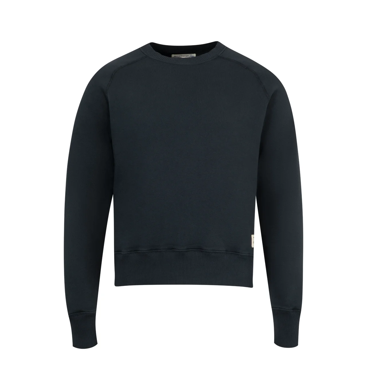 MERZ B. SCHWANEN Basic Sweatshirt featuring raglan sleeves, relaxed fit, classic crew neck, ribbed hem, triangle inserts under arms and printed canvas label. 100% cotton. DESIGNER STYLE ID: RGSW01 COLOR: 98 CHARCOAL