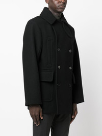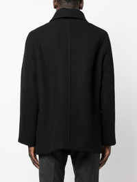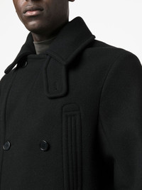double breasted virgin wool coat black virgin wool double-breasted button fastening notched collar long sleeves two slit pockets at the chest two side flap pockets straight hem Made in Italy Composition Virgin Wool 100% SIZE & FIT Model measurements Height 6 ft 2 in(1.87 m) Bust/Chest 36.41 in(92.5 cm) Hips 37 in(94 cm) Waist 29.52 in(75 cm) Washing instructions Dry Clean Only