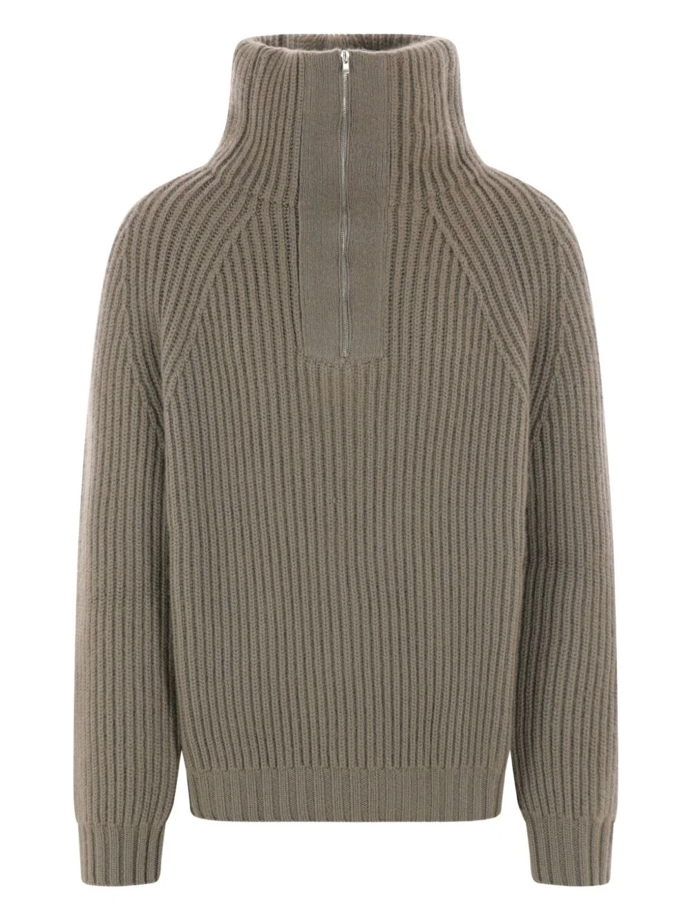 high-neck ribbed-knit sweater Highlights - Grey - Cashmere - Rib-knit - High neck - Half-zip closure - Long sleeves Made in Italy Composition Cashmere 100% Washing instructions Read Manufacturer Guidelines