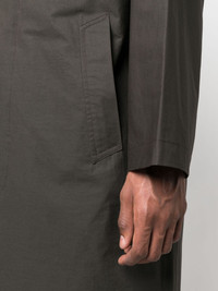 Steve organic-cotton waterproof coat Highlights - Dark khaki - Organic cotton - Waterproof - Spread collar - Concealed front fastening - Long wide sleeves - Two side slit pockets - Straight hem - Mid-length Made in Italy Composition Organic Cotton 100% SIZE & FIT Model measurements Height 6 ft 2 in(1.87 m) Bust/Chest 36.22 in(92 cm) Hips 37 in(94 cm) Waist 27.95 in(71 cm) FittingInformation Designed for a boxy fit, intended for a loose fit throughout Made from a midweight non-stretch fabric This piece fits true to size – take your usual size Washing instructions Machine Wash