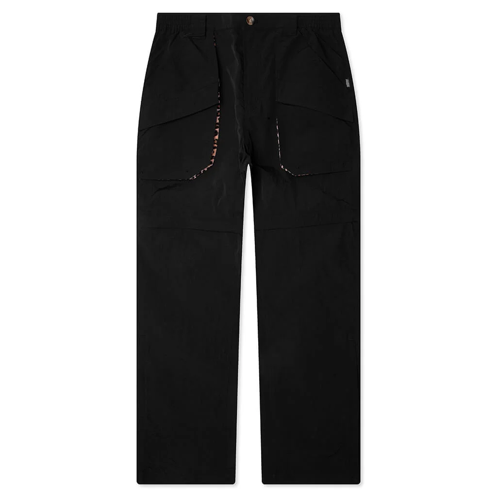 Built from smooth polyester, the Metalwood Studio Bomber Pant reimagines a classic silhouette with modern detail. Featuring an elastic waistband, a zip-fly with button closure, and six-pocket design. Underneath the pockets, contrast cheetah-print fabric decorate the pocket panels. Zippered panels and cuffs complete the look. - 100% Polyester - Elastic waistband - Zip-fly with button closure - 6-pocket design - Zippered panels - Zippered cuffs - Style No: 25FW-08-100-BLK