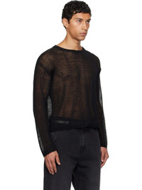 Semi-sheer open-knit linen-blend sweater. · Rib-knit crewneck, hem, and cuffs · Exposed seam at side seams and armscyes · Dropped shoulders Supplier color: Black 87% linen, 17% polyamide. Made in Portugal 252505M201000