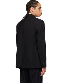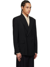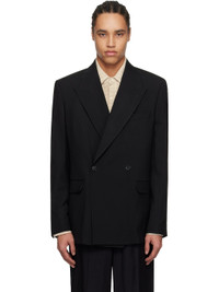 Wool barathea blazer. · Peaked lapel · Double-breasted button closure · Welt pocket at chest · Flap pockets · Padded shoulders · Surgeon's cuffs · Central vent at back hem · Welt pockets at interior · Full recycled polyester satin lining Supplier color: Black tropical wool Body: 100% wool. Lining: 100% recycled polyester. Made in Portugal 251505M195003