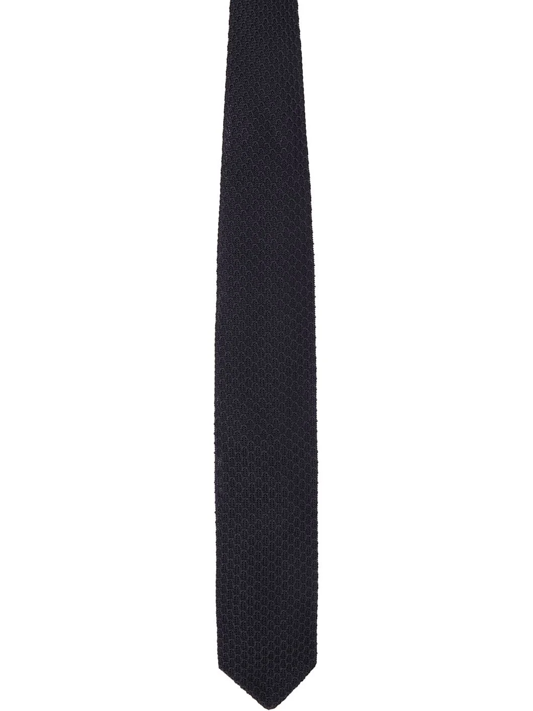 Waffle-knit silk tie in black. · Grosgrain trim at back face · W2.75" Supplier color: Black 100% silk. Made in Italy 251505M158001