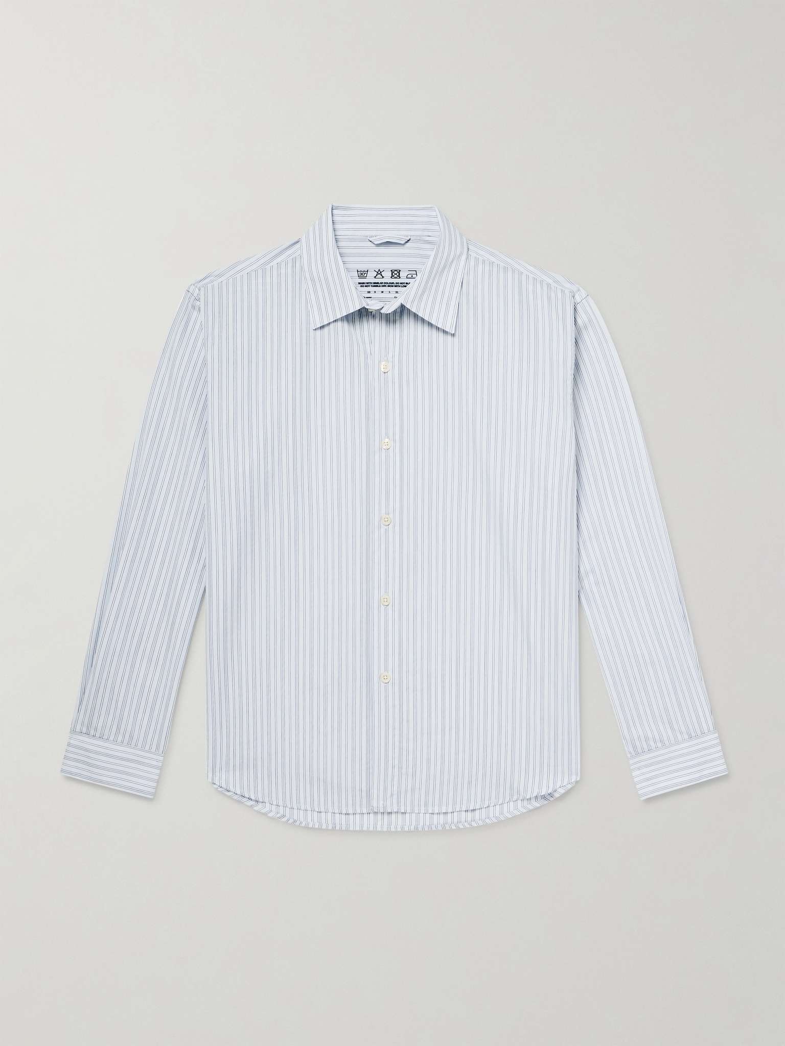 Thanks to brands like mfpen, many menswear enthusiasts cite Scandi fashion as a key influence. Cut from pinstriped cotton, this 'Common' shirt has a streamlined shape and minimal detailing. The back is finished with a raw-edged locker loop for a relaxed feel. Size & Fit - Fits true to size. Take your normal size - Designed for a regular fit - Mid-weight, non-stretchy fabric - Model is shown wearing a M - Model measures: chest 38"/ 96cm, height 6'2"/ 188cm Details & Care - White, light-grey and navy cotton - Button fastenings - 100% cotton - Machine wash - Designer colour: Financial Stripe