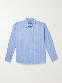 You'll mean business in mfpen's 'Executive' shirt. Tailored from lightweight cotton-seersucker, it has a sharp collar and falls to a gently curved hem. The checked pattern is inspired by vintage tablecloths. Size & Fit - Fits true to size. Take your normal size - Designed for a loose fit - Lightweight, non-stretchy fabric - Model is shown wearing a M - Model measures: chest 38"/ 96cm, height 6'1"/ 185cm Details & Care - Azure and white cotton-seersucker - Button fastenings - 100% cotton - Machine wash - Designer color: Textured Tablecloth