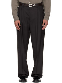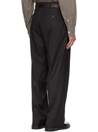 Deadstock wool twill trousers. · Wide straight-leg · Mid-rise · Belt loops · Four-pocket styling · Zip fly · Pleats at front · Creased legs · Partial satin lining Supplier color: Coffee twill wool Body: 100% wool. Trim: 70% polyester, 30% cotton. Lining: 100% polyester. Made in Portugal 252505M191003