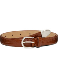 Handcrafted croc-embossed leather belt. · Pin-buckle fastening · Hardware at end · Silver-tone brass hardware · W1" Supplier color: Russet Croc Leather, brass. Made in Portugal 261505M131001