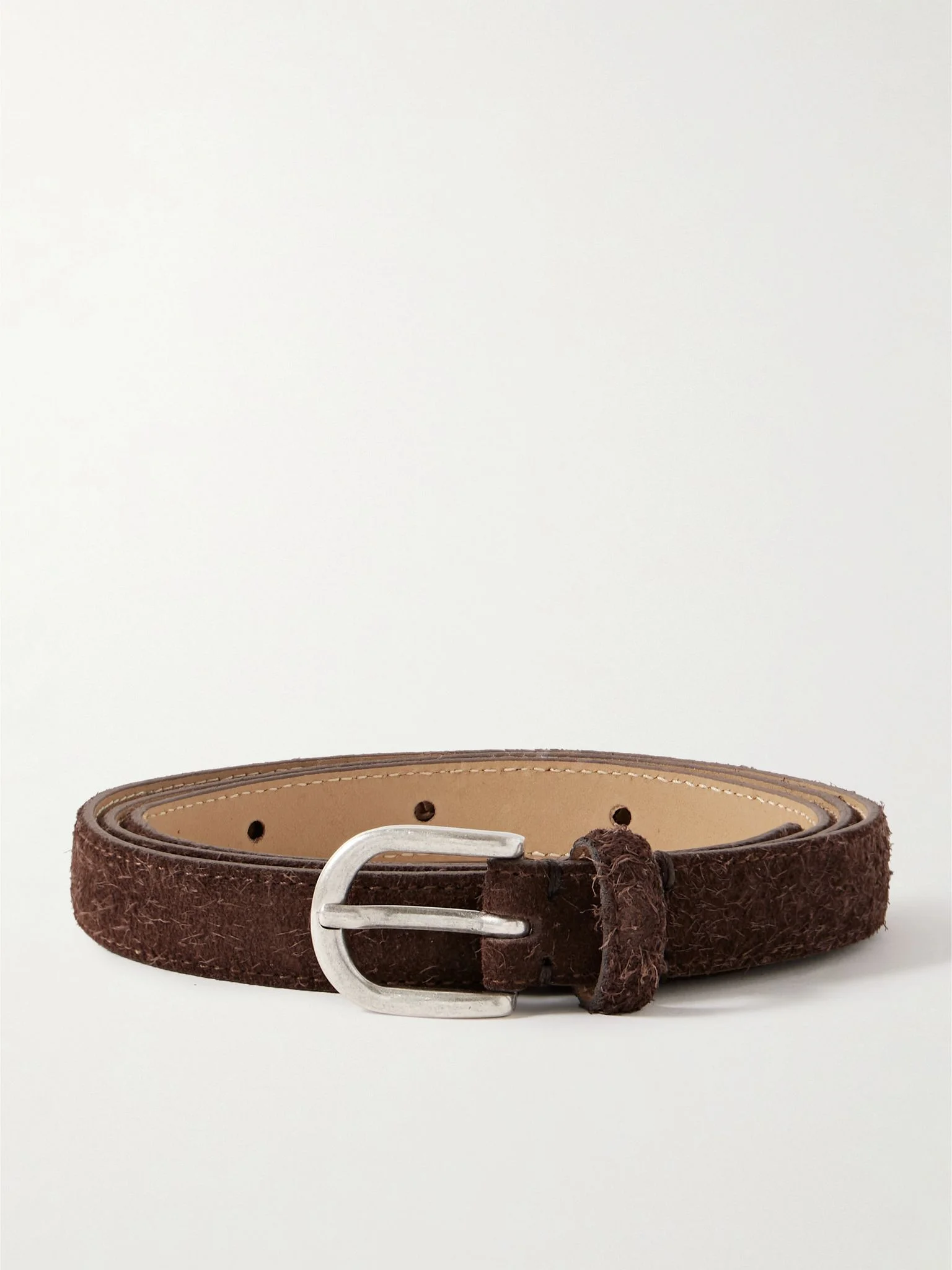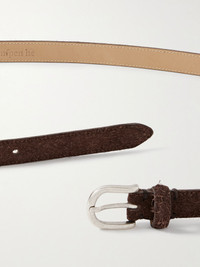 mfpen’s slim belt is crafted from suede that's brushed to give it an aged look. It fastens with a sleek silver-tone buckle and works best with more laid-back outfits. Size & Fit - Measurements can be found in the link below Details & Care - Brown brushed-suede (Cow) - Silver-tone buckle fastening