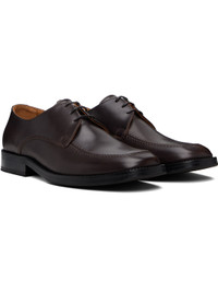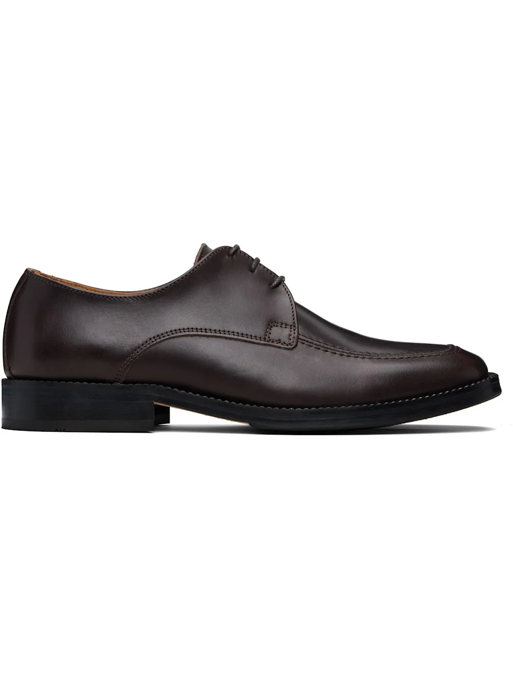 Polished leather derbys. · Square moc toe · Lace-up closure · Aniline-dyed leather lining · Hand-stacked leather heel and midsole · Leather sole with rubber injections Supplier color: Brown polido Upper: leather. Sole: leather, rubber. Made in Portugal 252505M225000
