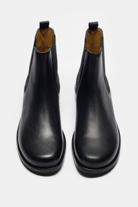 mfpen men's standard fit black leather chelsea boot. Features a rounded toe, elasticized gores, and storm welt leather sole. Fit - Standard fit - European sizing Feature - Leather upper - Rounded toe - Elasticized gores - Heel pulls - Storm welted leather sole - Low stacked heel Fabrication - Style # FM325-003 - Made in Portugal SKU: FM325-003-41