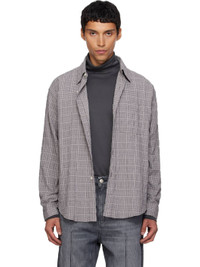 Garment-washed stretch cotton seersucker shirt. · Check pattern throughout · Spread collar · Button closure · Patch pocket at chest · Shirttail hem · Dropped shoulders · Adjustable buttoned barrel cuffs · Box pleat at back yoke Supplier color: Grey textured check 99% cotton, 1% elastane. Made in Portugal 252505M192024