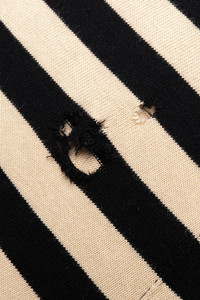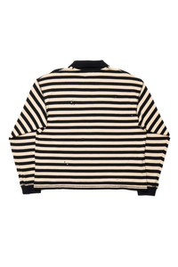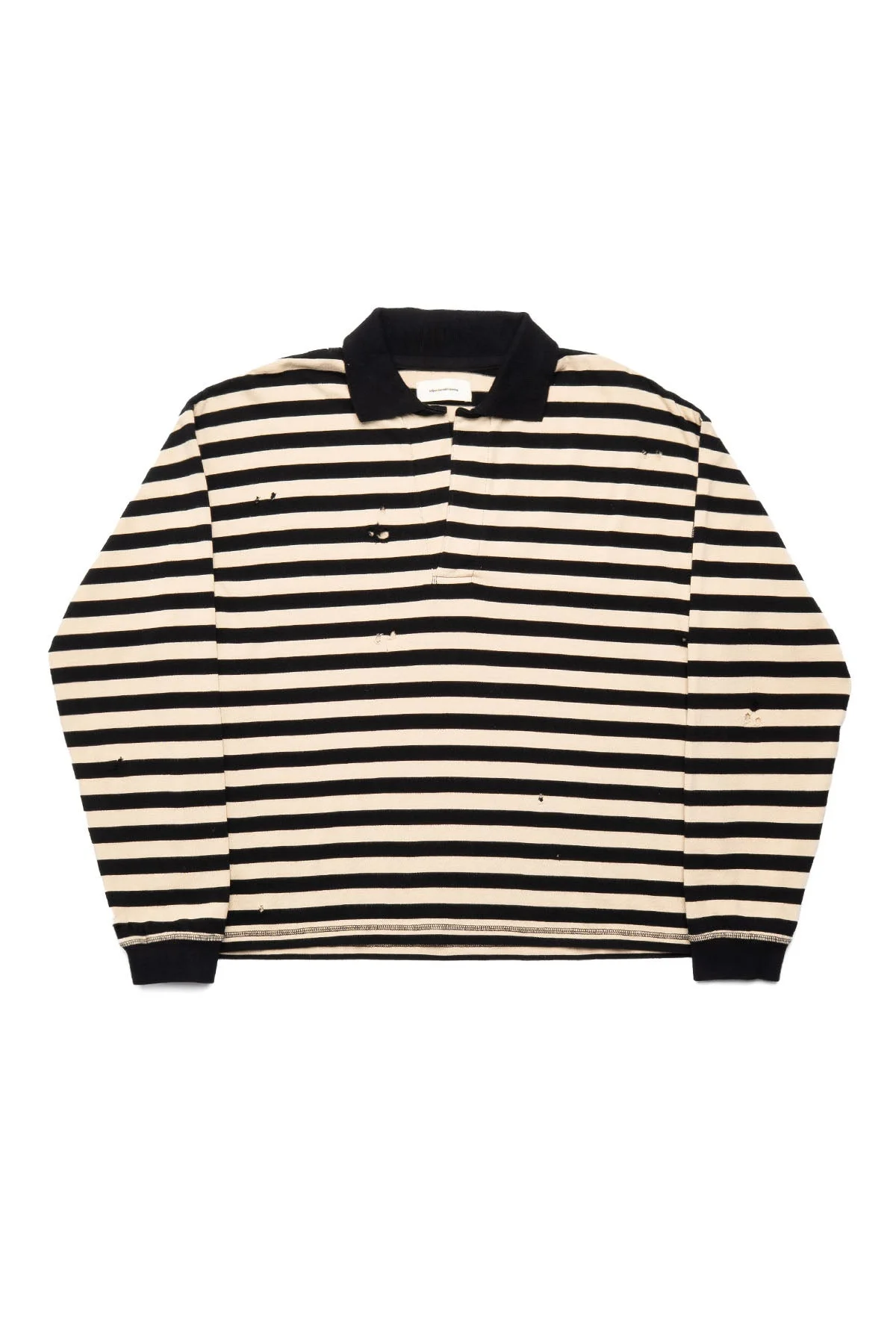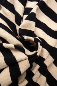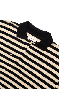 The Fractured Polo has a relaxed fit with dropped shoulders. Featuring an open placket, distressed details and a contrast rib knit at collar and cuffs. Cut from a heavyweight organic cotton jersey with bold black and beige stripes. - Relaxed Fit - Fabric and Garment made in Portugal - 100% Organic Cotton