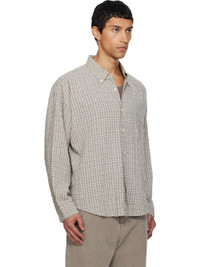 Oversized stretch viscose- and cotton-blend seersucker shirt. · Garment-washed · Check pattern throughout · Button-down spread collar · Button closure · Shirttail hem · Dropped shoulders · Adjustable buttoned barrel cuffs · Box pleat at back yoke Supplier color: Gray generation check 53% viscose, 25% cotton, 11% wool, 10% polyester, 1% elastane. Made in Portugal 252505M192012