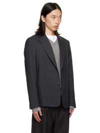 Plain-woven wool blazer. · Notched lapel · Button closure · Patch pockets at front · Padded shoulders · Buttoned surgeon's cuffs · Welt pocket at interior · Partial satin lining Supplier color: Grey worsted wool Body: 100% wool. Lining: 100% polyester. Made in Portugal 252505M195002