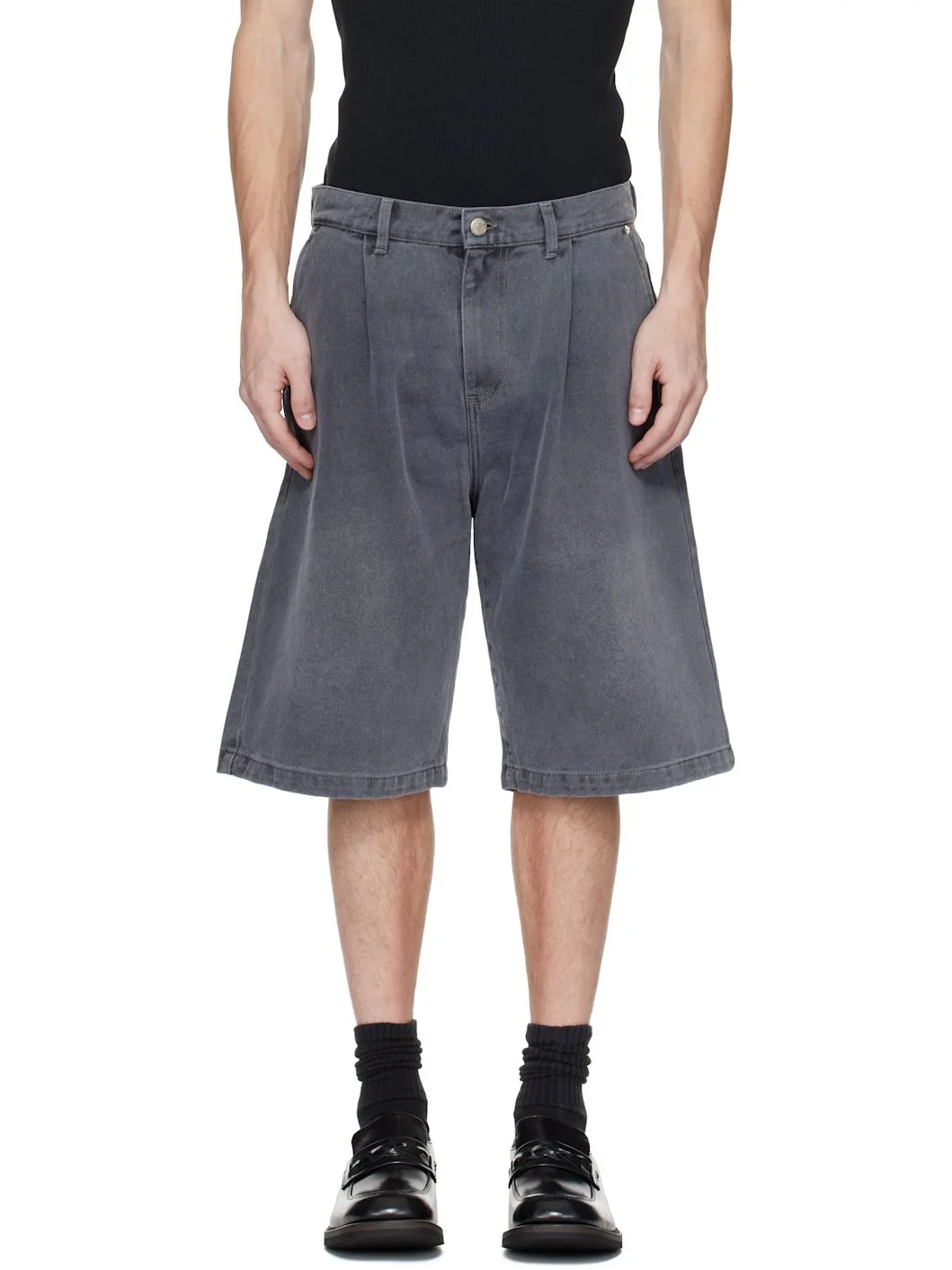 Non-stretch organic cotton denim shorts. Fading throughout. · Belt loops · Four-pocket styling · Zip fly · Pleats at front · Graphic rivets at front and back pockets Supplier color: Slate 100% organic cotton. Made in Portugal 251505M193003