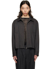 Virgin wool- and recycled wool-blend tweed jacket. · Jacquard stripes throughout · Spread collar · Two-way zip closure · Welt pockets at waist · Buttoned barrel cuffs · Adjustable buttoned tabs at back hem · Patch pocket at interior · Full satin twill lining Supplier color: Brown melange stripe Body: 41% wool, 26% recycled polyester, 20% recycled wool, 13% polyamide. Lining: 100% polyester. Made in Portugal 252505M180001