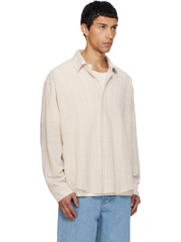 Oversized recycled cotton-blend seersucker shirt. · Garment-washed · Check pattern throughout · Spread collar · Button closure · Shirttail hem · Dropped shoulders · Adjustable buttoned barrel cuffs Supplier color: Dusty seersucker check 32% recycled cotton, 36% cotton, 29% recycled polyester, 3% other fibers. Made in Portugal 252505M192017